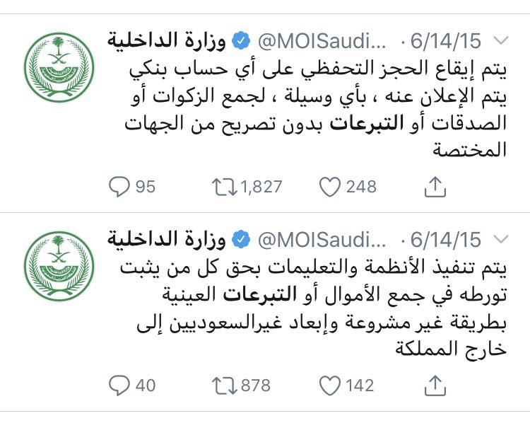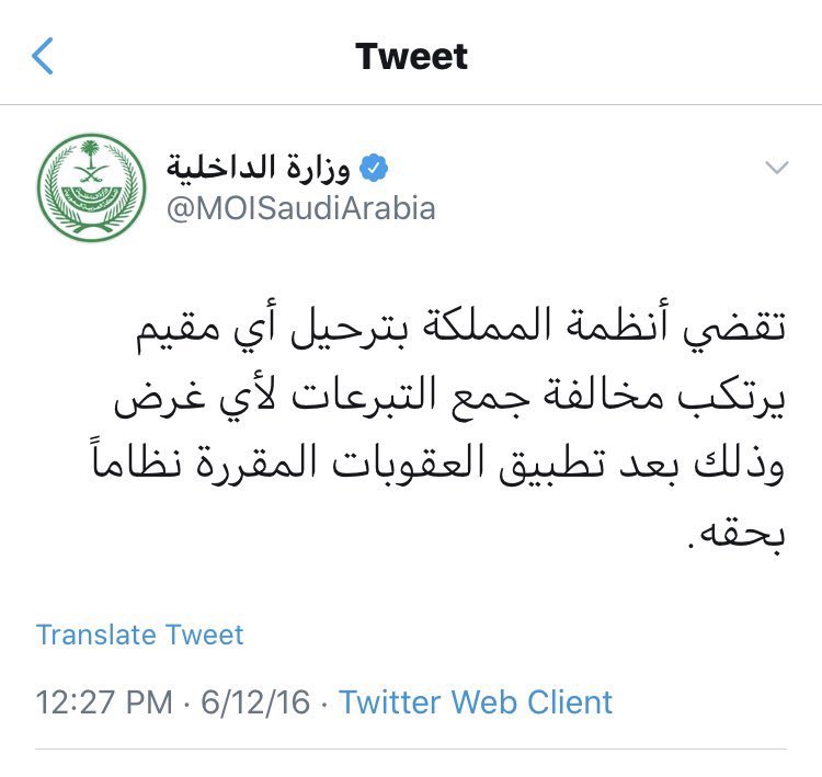 نظام وزارة الداخلية ينص بشكل واضح على منع جمع التبرعات سواء مادية او عينية بدون ترخيص وحذرت النيابة العامة من التجاوب مع طلب التبرعات