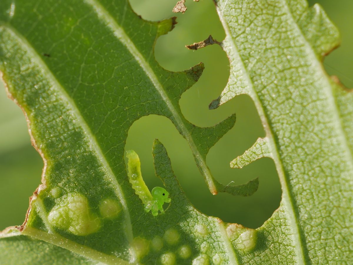 تأكل يرقاتها الأوراق بشكل متعرج