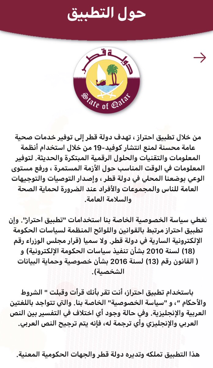 اخيراً .. اشكرهم على جهودهم .. ولازم يكون فيه قناعة عند كل شخص بعيد عن اي رادع او مخالفة .. انه بعدم استخدامه للتطبيق هو يحرم نفسه قبل اي حد اخر من وسيلة فعالة وموثوقة باذن الله للوقاية من العدوى .. وهو المتضرر الاول من امتناعه عن استخدام التطبيق .. والله يحفظ الجميع 🤲🏼