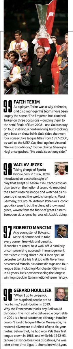 ٩٩: فاتح تريم: وصل بتركيا لنصف نهائي يورو ٠٨ واختارته مجلة World Soccer ثامن أفضل مدرب وقتها.