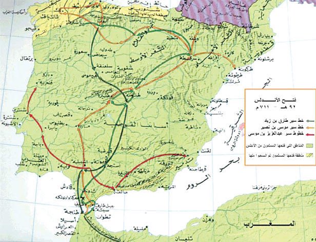 (8)سلطانهم هناك والمعروف أن قوة المسلمين في الأندلس كانت متينة في ذلك الوقت وقبضتهم عليها قوية لكن ندرة المعلومات عن حقيقة وضعها وأوضاع المسلمين فيها مردها إلى قصر مدة الولاة الذين تعاقبوا عليها حتى الآن وانهماكهم بحل المشکلات الداخلية والصراعات بين مختلف العشائر