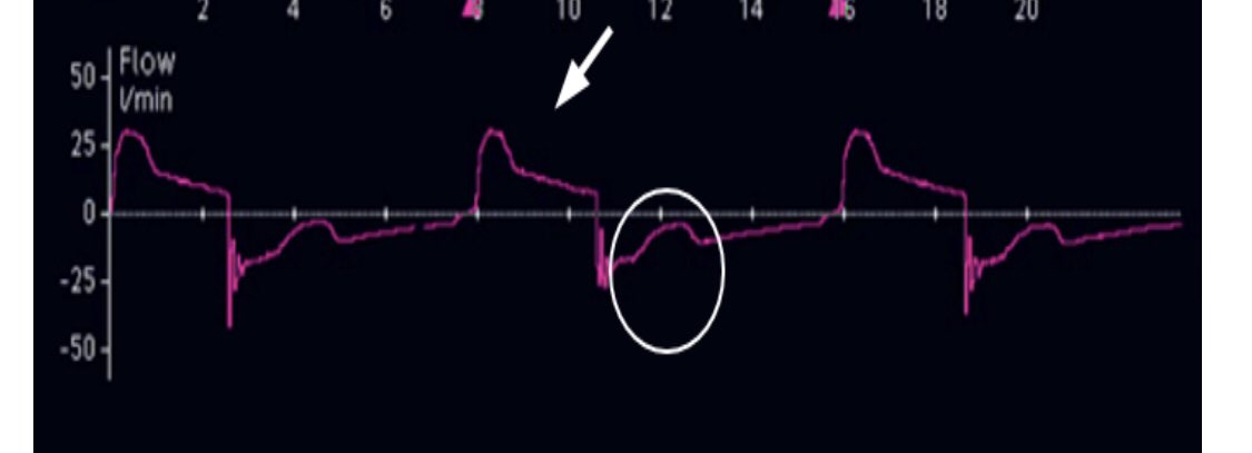تستطيع رؤية هذا الخلل في Flow waveform أو pressure waveform.