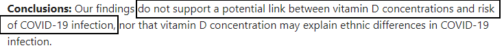 بمعرفة ما سبق، سنجد أن أغلب الدراسات التي أشارت لوجود "ارتباط" بين نقص مستويات فيتامين د في الدم وشدة التهاب كورونا، تم فيها قياس مستوى الفيتامين وقت الإصابة أو حتى مقارنة أحوال دول مختلفة. وبالتالي لا يمكن من خلالها "استنتاج" السببية. ولا بناء توصيات لأخذ الفيتامين استباقا!
