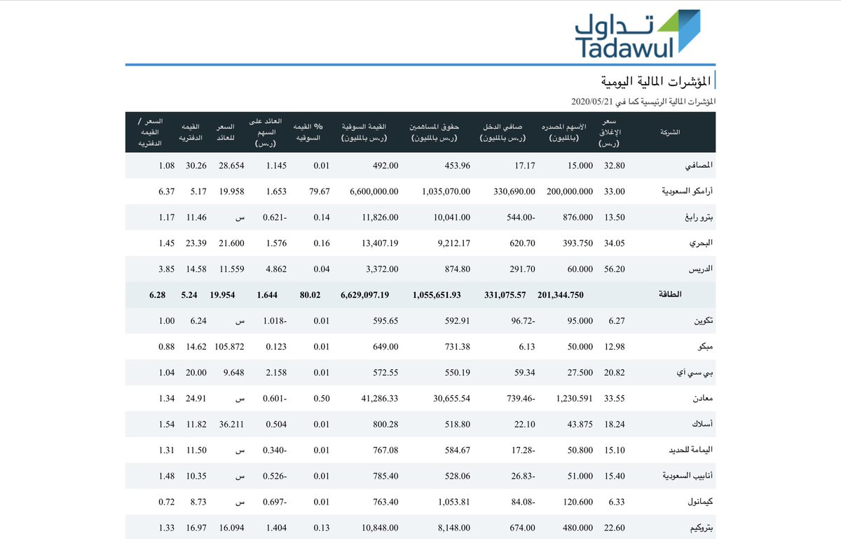 موقع #تداول لا يوفر ميزة الفرز واعادة ترتيب القائمة، كل ما عليك فعله هو نسخ المعلومات وادراجها في برنامج الاكسل او Google Sheet وغيره
