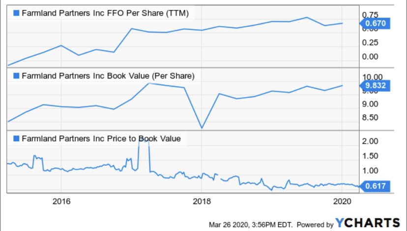 بالاضافة إلى أن أصول $FPI تتداول عند ٧٠٪ من القيمة العادلة فقط، مقارنة ب $LAND التي تتداول عند قيمتها العادلة بالكامل تقريبا.