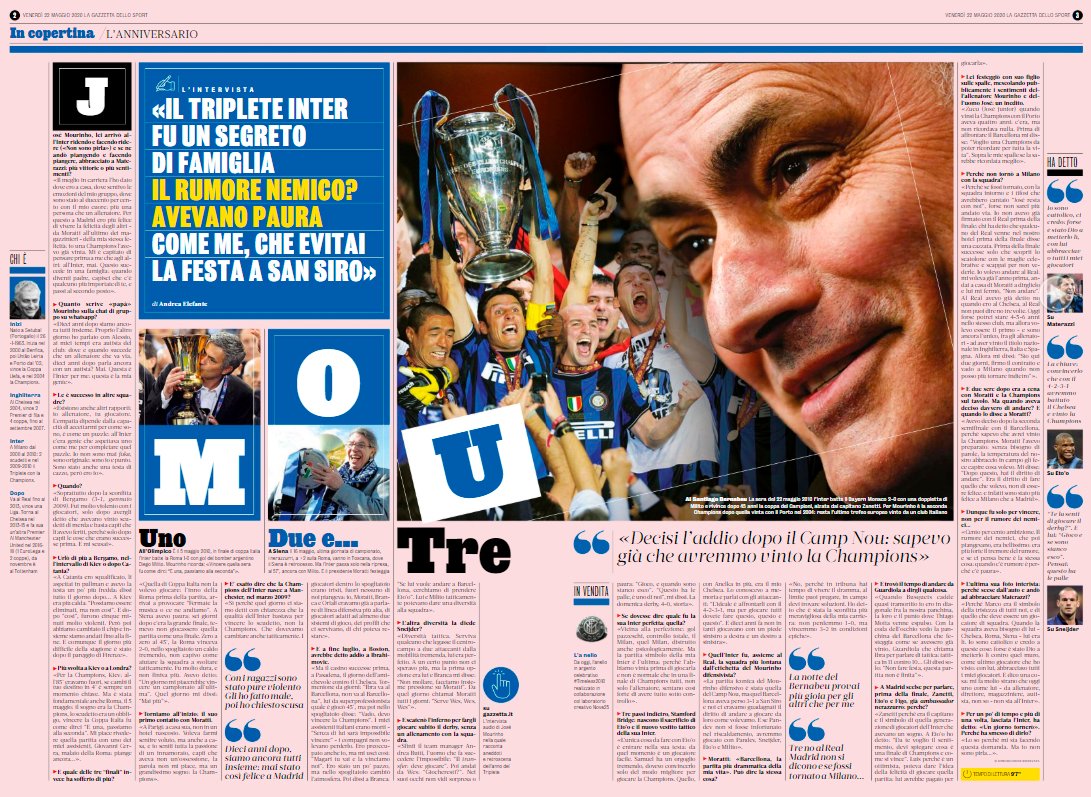 التغريدات القادمة مقابلة صحيفة لاغازيتا مع مورينهو بمناسبة مرور 10 أعوام على "الثلاثية التاريخية". #FCIM