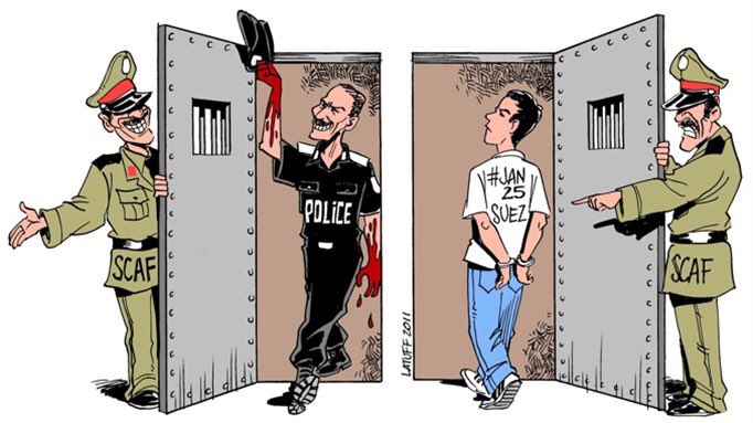 ولأن الثورة كانت ضد العسكر اللي شيفنها عزبة #طنطاوي ما سبش مناسبة الا ما بين وسخته ووشه القبيح فيها فاعتقل متظاهرين وحاكمهم عسكريا