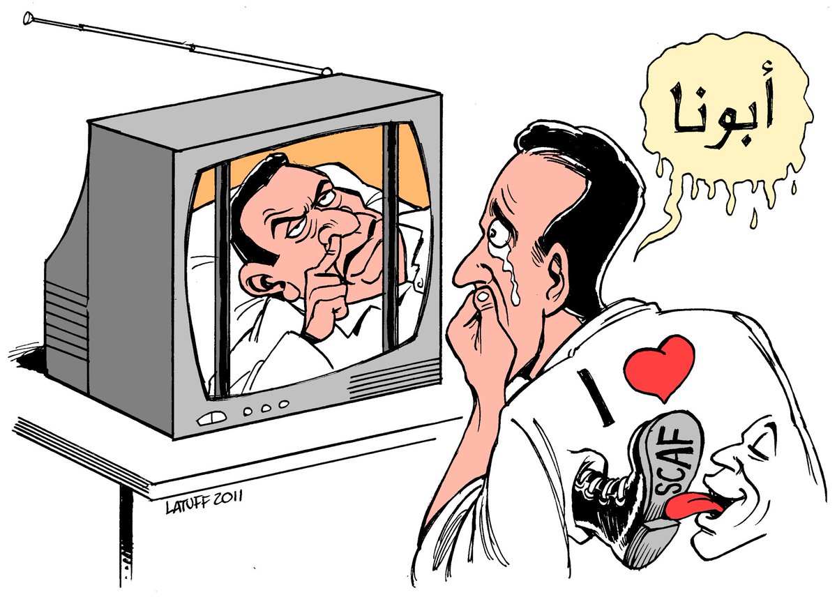 كان يا مكان يا سعد يا اكرام كان في حاكم ظالم اسمه #حسني_مبارك حكم المحروسة ٣٠ سنة سرق خيرها وفقر أهلها ومرضهم وكان محتمي في عساكره وبيقسم معاهم الكعكة سوكيتي وعامل فيها ديموقراطي ومملك حزبه زمام الأمور