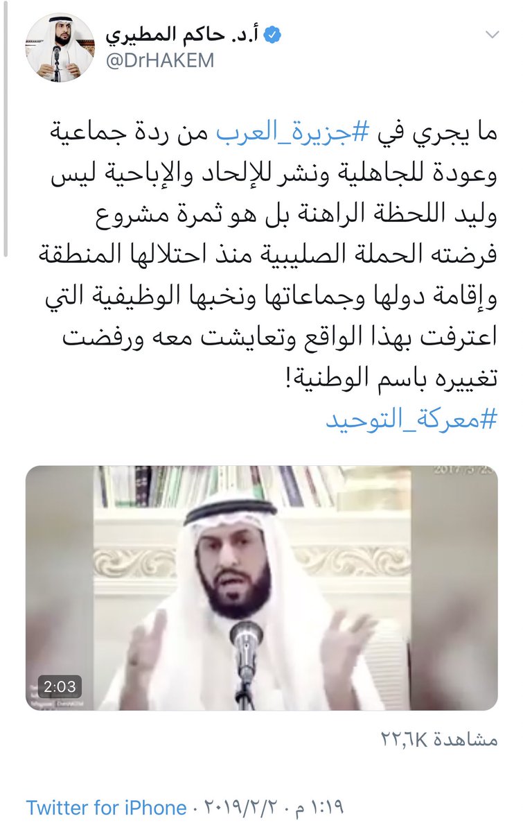 لمَّا وجد "أخزم الحزبي" فشل مشروع الثورات #الفوضى_الخلاقة وظهور أيتام هيلاري كيلنتون مع نفور بعض الحكومات العربية عن فكر الجماعات الإسلامية "الأيديولوجيا الراديكالية" سارع لعملية "المناوأة" وذلك بتوزيع "صكوك التكفير" بـ "شنشنة" عرفناها من "أخزم" ألا وهي "أمريكا" و "إسرائيل"!!