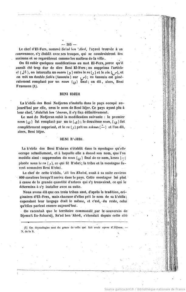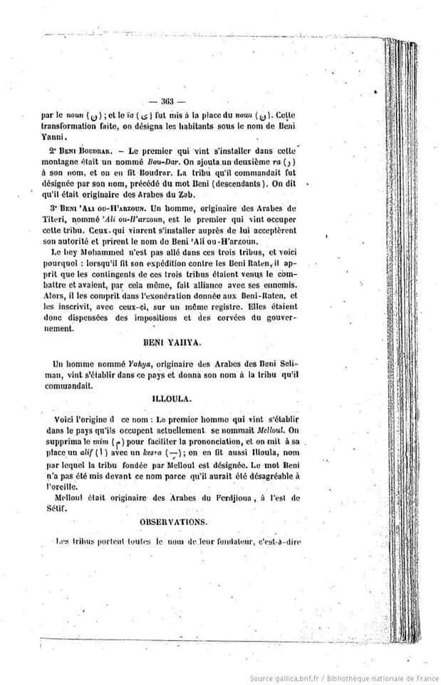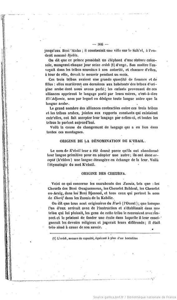 صفحات من المجلة الفرنسيةصدرت في اوت 1858 وفيه دراسة ان القبائل اصلهم كلهم عرب الا ثلاث قبائل أصلها فارسي