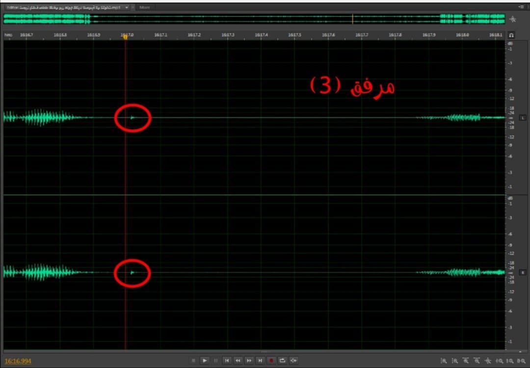8️⃣ ومع أنني متخصص في مجال نظم المعلومات، إلا أن فك طلاسم مثل هذه الفبركات بحاجة إلى Sound Engineer ، لذا لجأت إلى أحد المتخصصين في هذا المجال، وعكفنا لساعات على تحليل هذا التسجيل، وخرجنا بالآتي: