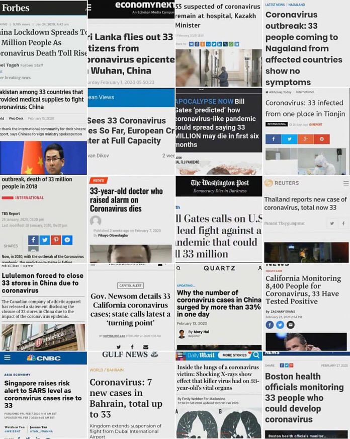 لقد رأيت مرارًا وتكرارًا في جميع عناوين الفيروسات التاجية تلك الرقم 33 يفضل دائما الغيبيات ولكن من خلال مجموعة غامضة خاصة الماسونية بدأ كل شيء منطقيًا