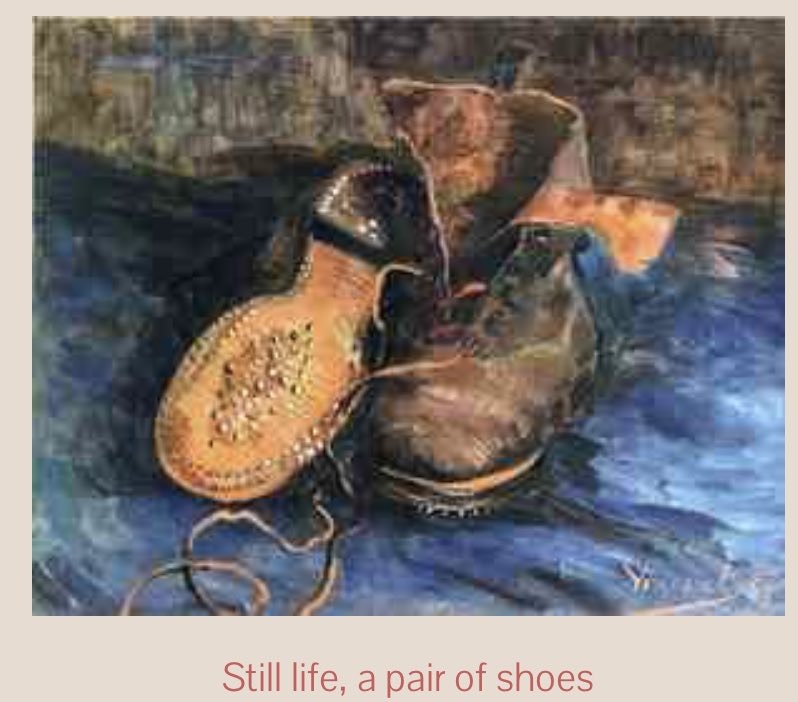في قلب المأساة ثمة خطوط من البهجة أريد لألواني أن تظهرها، في حقول "الغربان" وسنابل القمح بأعناقها الملوية. وحتى "حذاء الفلاح" الذي يرشح بؤسا ثمة فرح ما أريد أن أقبض عليه بواسطة اللون والحركة.