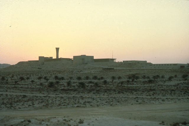 تم تجميع المباني الأكاديمية في وسط الموقع، على قمة تلة أشبه بالواحة.