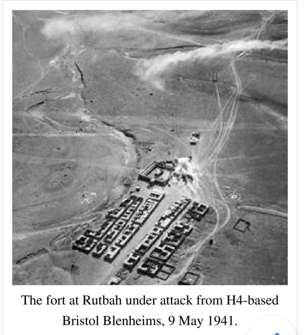 ٢١-الجيش العراقي بتاريخ2-5-1941يحرر(قاعدة الرطبة)المهمة لخط(موصل~حيفا)النفطي والذي يجهز الوقود لأسطول(البحر المتوسط)الانكليزي والطائرات الانكليزيةتقصف قاعدةهينايدي(الرشيد)الجويةوتدمر22طائرةعراقية(ثلث قوته الجوية)بساعةواحدةفقط
