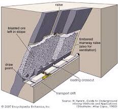 يتم تنفيذ هذه التقنية في رواسب خام عمودية. ومع ذلك ، في هذه الحالة ، يُسمح للخام المنفجر بالتراكم في الجزء السفلي من broken ore ، وهذا يشكل سطح عمل للتنقيب في مستويات أعلى ، ويدعم أيضًا جدران الموقد.