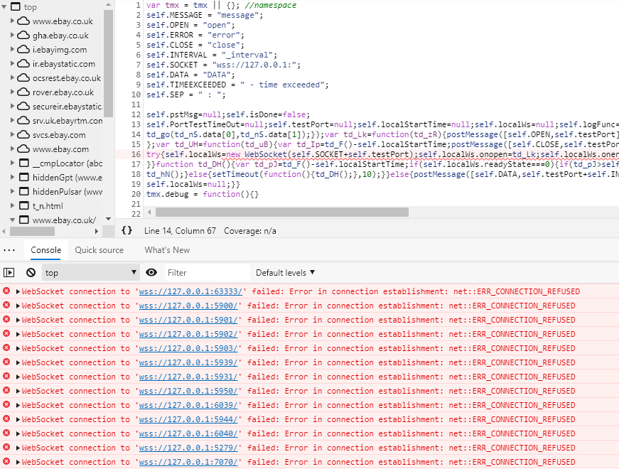نشر أحد الباحثين معلومات تفيد أن شركة @eBay تقوم بعمل فحص للمنافذ في جهاز الشخص المتصل بالموقع و عادةً هذه الطريقة تستخدم من قبل #الهكرز أو #مختبري_الإختراق للتأكد من عدم وجود منافذ مفتوحة قد يتم استغلالها.