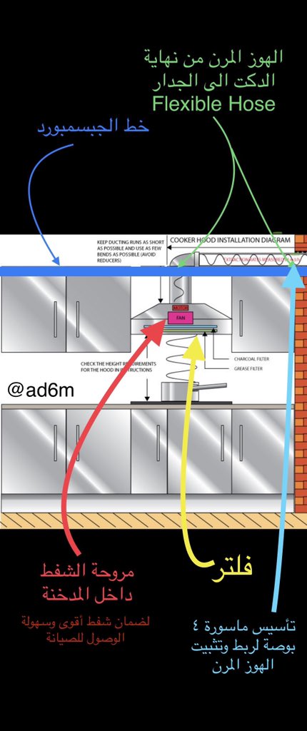 لكثرة الأسئلة عن مكونات المدخنة وطريقة التأسيس .. هذه الرسمة توضح لكم التفاصيل .. فقط الكوع اللي بنهاية الدكت غير ضروري ..