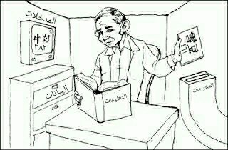 لكن معه كتيب تعليمات يوجهه "اذا رأيت الرسمه رقم ٦٢١ خذ الرسمة رقم ٢١٣ من مخزن البيانات، وضعها في المخرجات"