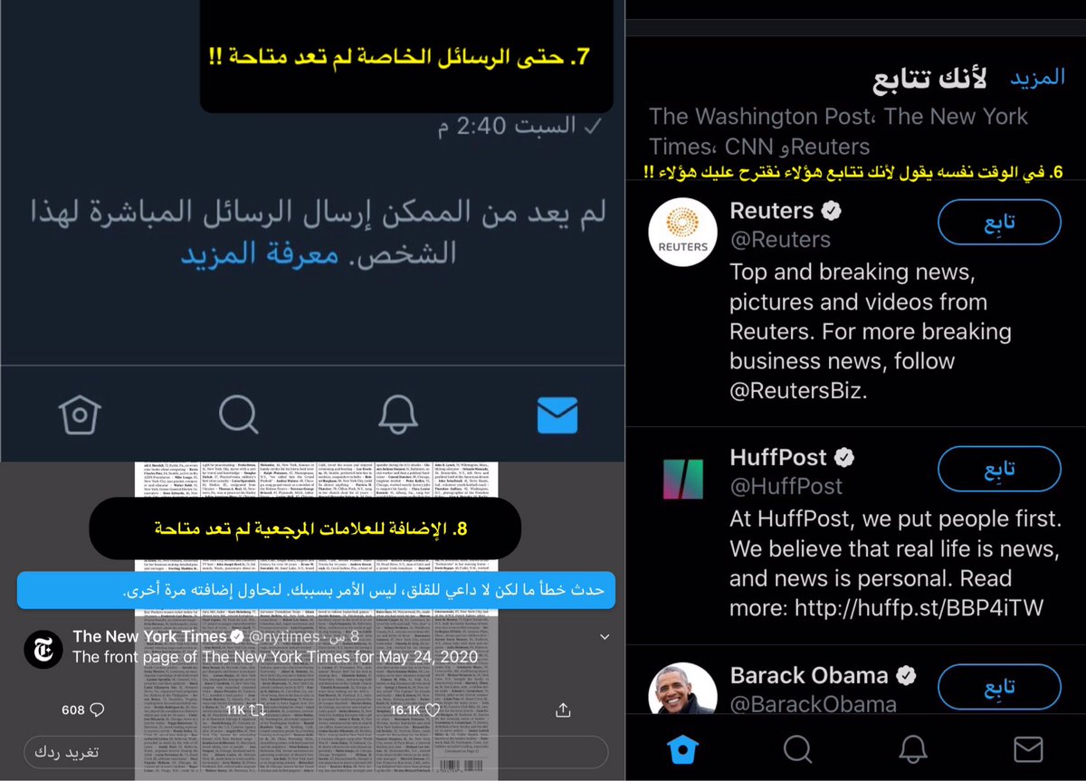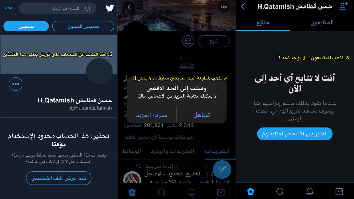 ثم تبع ذلك اختفاء ( المُتابَعون ) مرة أخرى .. ومُنعتُ من التغريد !!