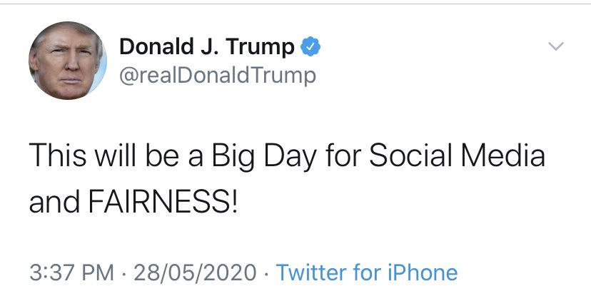 وغرد ترامب"يشعر الجمهوريون بأن منصات التواصل الاجتماعي تمارس رقابة كاملة على أصوات المحافظين. سنقوم بتنظيمها بشدة أو إغلاقها لعدم السماح بتكرار أمر مماثل".