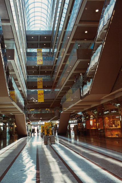 تصميم المركز التجاري عبارة عن مستطيل وبه كورت داخلي مغطى من الأعلى بسكاي لايت. ويقع المدخل الرئيسي في الجنوب ومن خلاله يتم الدخول على نافورة ومحاط بها مجموعة من السلالم الكهربائية حول مربع مفتوح للأعلى ومغطى بسكاي لايت. هناك مدخل آخر من الشمال مرتبط بالساحة.