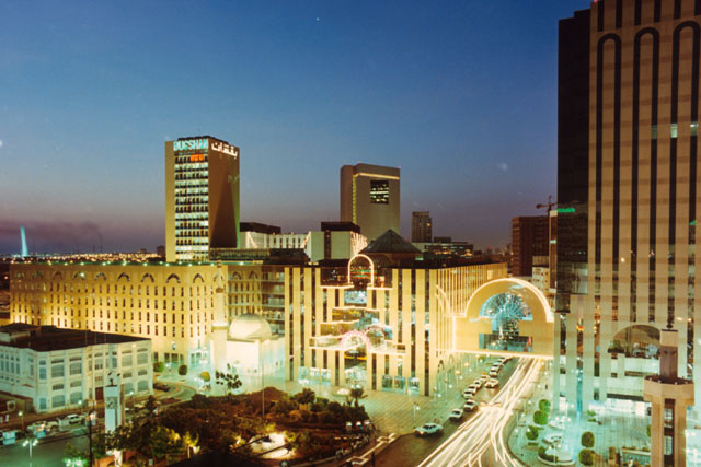 تم استخدام بعض المفردات الإسلامية المجردة في هذا التصميم كاستخدام الأقواس المجردة على المداخل لتأكيدها والفناء الداخلي في المركز التجاري ومحاولة جعله يتوجه نحو الداخل. حيث المحلات التجارية تطل على كورت داخلي مغطى.