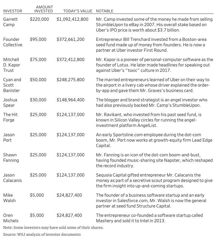 جولة البذرة في شركة #أوبر قبل عشر سنوات. لاحظ وجود مساهمات بخمسة آلاف دولار فقط - قيمة المستثمر الملائكي الجيد تتخطى مجرد المساهمة المالية...