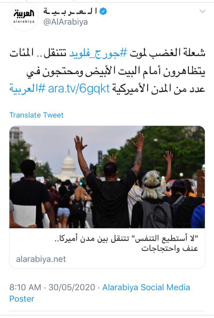 استغرب من ضعف التغطية الميدانية لأحداث المظاهرات في أمريكا لأقوى القنوات العربية والجزيرة،مافي صور او فيديو حصري، كل الي قدروا عليه تغريدة واحده ،احنا في عصر السرعة محتاجين فيديو وسبق صحفي،الاعلام التقليدي اصابه حمى الهرم
