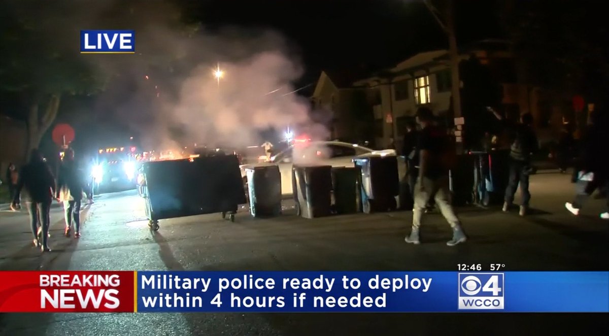 مينيابوليس - اخيرا ظهرت فرقة عسكرية مكونه من 350 جندي وضابط تقريبا ذاهبون باتجاه تجمعات المتظاهرين.