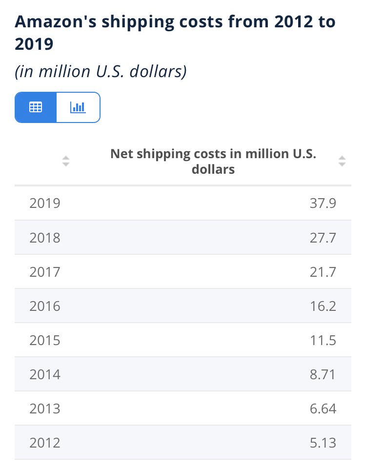 قامت أمازون بتوسيع ذراعها اللوجستي بشكل كبير حيث يتم تسليم ما يقرب من نصف (48٪) طرود أمازون من قبل الشركة نفسها ، وفقًا لتقرير صادر عن Rakuten Intelligence. في أوائل عام 2018، كان هذا الرقم أقرب إلى 20٪