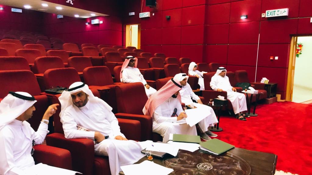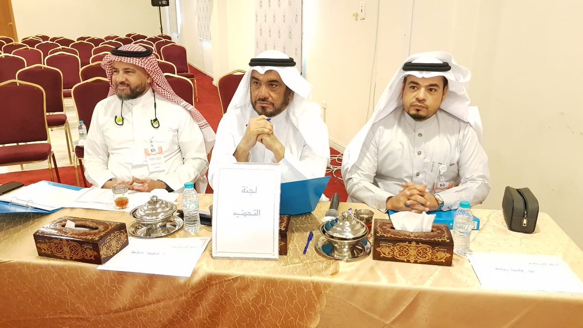 كانت ضخما وجميل ، احمر اللون ، وعند دخولي شاهدة لجنة التحكيم جالستاً كانوا ٣ ، أ.نايف الذروي و @NNahary99 و أ.عبده فتيني ، وعلى يمينهم ممثل احد المكاتب ، صدمني مشهدة وادخل الفزع الى قلبي ، لقد كان واضعاً ملفات وكتب على حجره حتى كنت لا اشاهد وجهه من علوها، ثم جلست وكنت انظر اليه.
