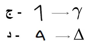 - ج، بالفصحى جيم وبالسريانية جاما gama