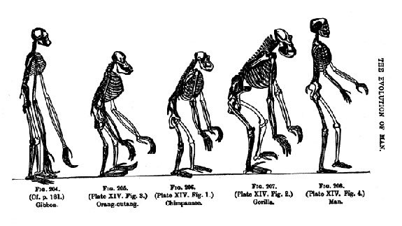 كثير من علماء الأحياء كرسوا حياتهم من أجل إثبات صحة النظرية معمليًا، منهم هكسلي، الذي قضى عقدًا كاملًا من حياته في محاولة تشريحية جادة قصد بها عقد مقاربة بين الإنسان والقردة من حيث البناء العظمي وتشكيل الجمجمة، ليضع لنا هذا الرسم التوضيحي الذي لا يزال مستخدمًا حتى اليوم.