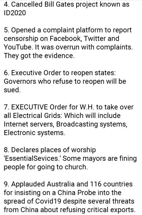 لبى ترمب مطالب الديمقراطيين وسير وحدات من الجيش للمساندة ولكن مع تسرب فيديوهات الأطباء والتمريض والكادر الطبي يتنافسون بالغناء والرقص واخبار عن الاسرة الشاغرة والمستشفيات الخالية وتصدرها التريند بدأ الناس يطالبون برفع الحظر وتفاوتت شدة تطبيقه بين الولايات