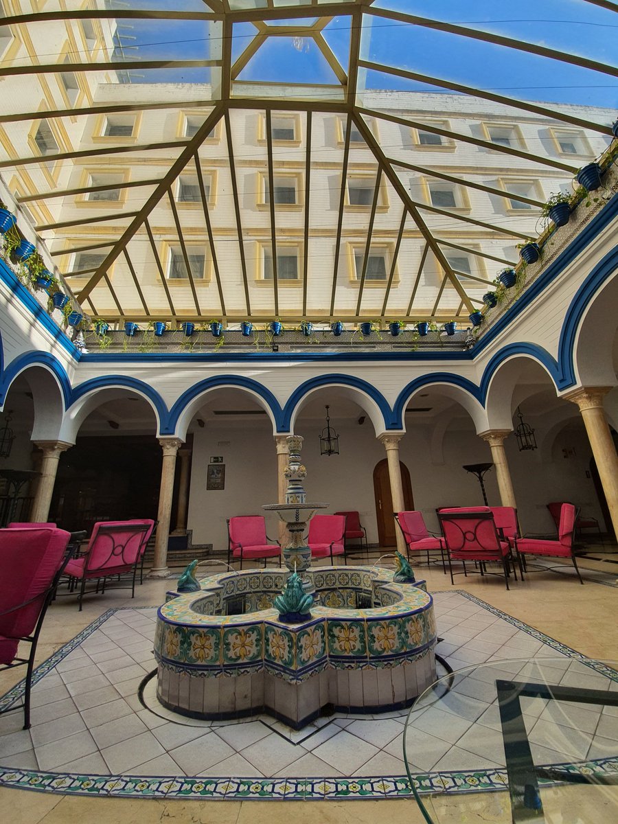 الفندق اللي نزلت فيه في #إشبيلية مصمم على الطراز الاندلسي حيث البهو الواسع و النافورة التي تتوسط المنزل و السقف للسماء و الأعمدة على شكل القبب و السيراميك الملون و الزخارف التي لا تحتوي وجوه