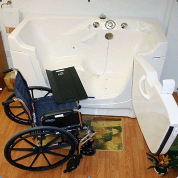 كذلك من الممكن استخدام البانيو ولكن يتطلب مقابض بارتفاعات ومقاسات صحيحة ليستطيع مستخدم الكرسي المتحرك الدخول والخروج من البانيو بدون مساعدة أحد