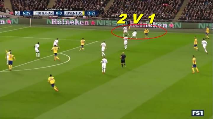 أما بالنسبه للأطراف، فإعتماد آليجري على طريقة 352 كان يسمح دائماً لدفاع توتنهام بتحقيق أفضليه أمام أظهرة يوفي الهجومين.