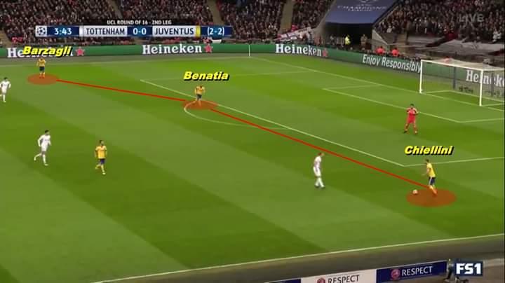 ذلك النشاط الذي حدث في أجناب ملعب يوفينتوس جعل لاعبي توتنهام يركزون أكثر في دفاعهم على أجناب الملعب وأصبحوا يتكاثفون للتواجد هناك والتصدي لهجمات يوفينتوس.