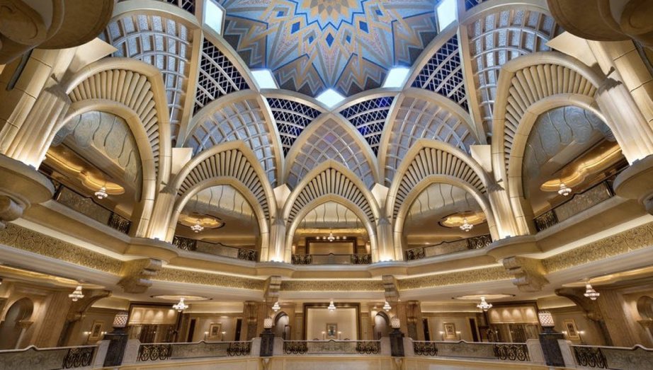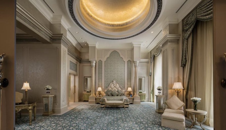 5️⃣ فندق #قصر_الامارات في أبوظبي | تم بنائه عام ٢٠٠١ وانتهى في ٢٠٠٥ | كلف ما يقارب ال 3 بليون دولار | يطل مباشرة على الخليج العربي ويوفر شاطئ خاص للمقيمين بالفندق | تقدر مساحته الإجمالية ب٨٥٠ الف قدم مكعب | يحتوي على ٣٠٢ سويت وعلى ١٤ مطعم فاخر وغيرها من المرافق.