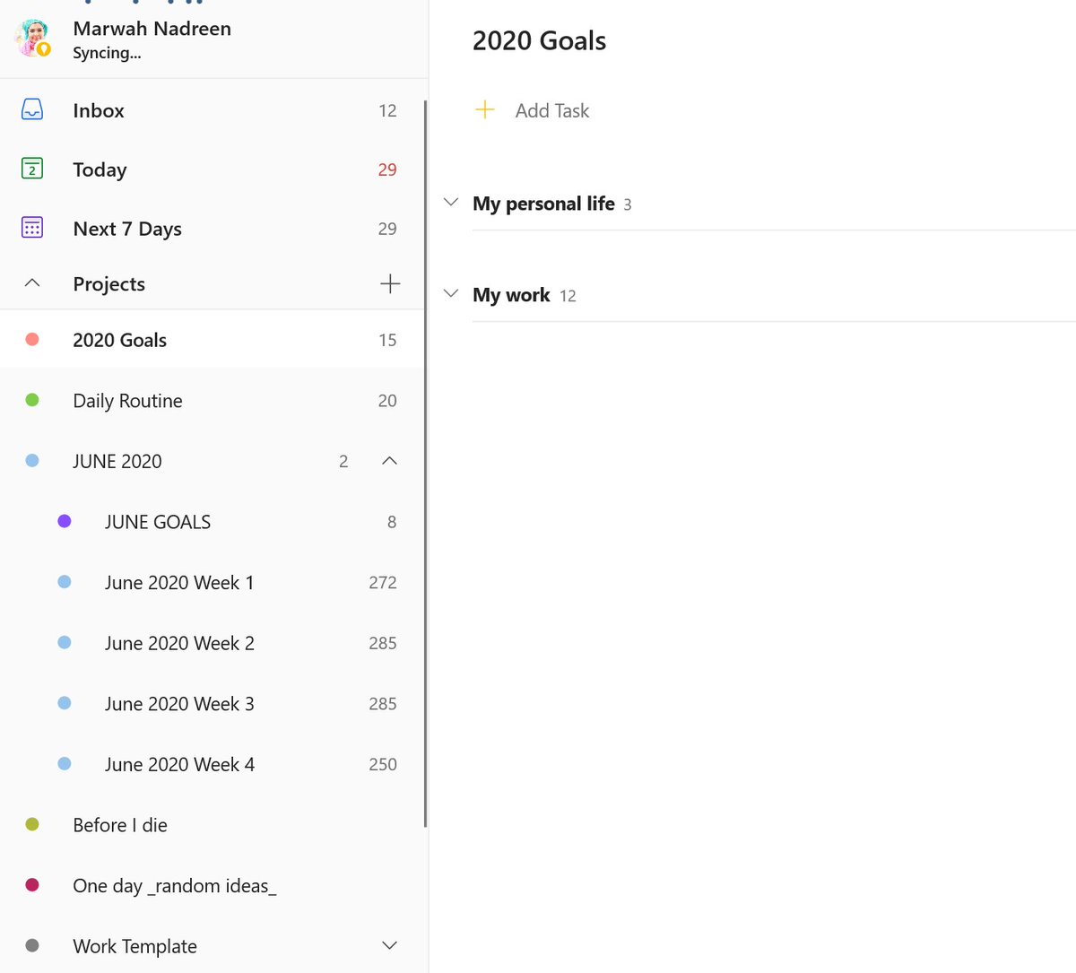 أول واحد @todoist ساعدني أحط مهامي و أهدافي و أقسمها و اعمل قوالب لاستخدامه في المهام المتكررة.