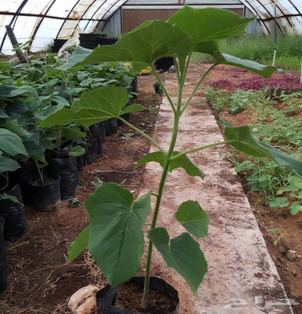 في الصورة ايضا مزروعة بالرياض ورأيت صورتها في نجران ايضا ، ويمينا شتلات من إنتاجنا لنوع استركوليا لوريدا