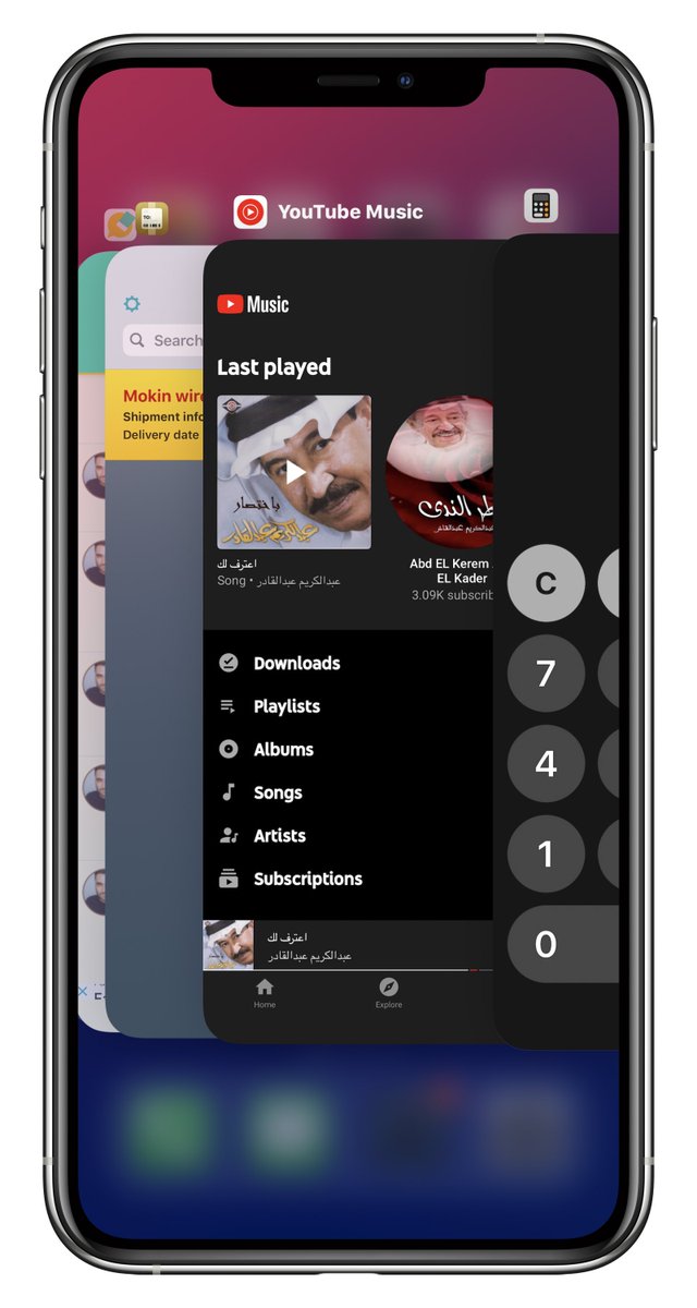 هذه الشاشة للتنقل بين التطبيقات وفي الآيفون التطبيق يعمل لمدة 10 دقائق بحد أقصى في الخلفية ثم يغلق تمامًا ولا تعمل في الخلفية إلا بعض الأوامر المحددة مثل الموسيقى في الخلفية أو الملاحة أو تحديد الموقع.