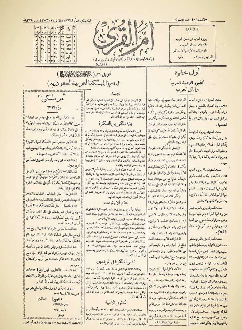 #بدليل الأمر الملكي : بعد الاعتماد على الله وبناء على ما رفع من البرقيات من كل رعايانا في مملكة الحجاز ونجد وملحقاتها ونزولاً على رغبة الرأي العام في بلادنا وحبًا في توحيد أجزاء هذه المملكة العربية ⬇️ يحول اسم المملكة الحجازية النجدية وملحقاتها إلى اسم المملكة العربية السعودية