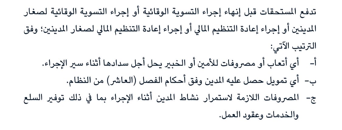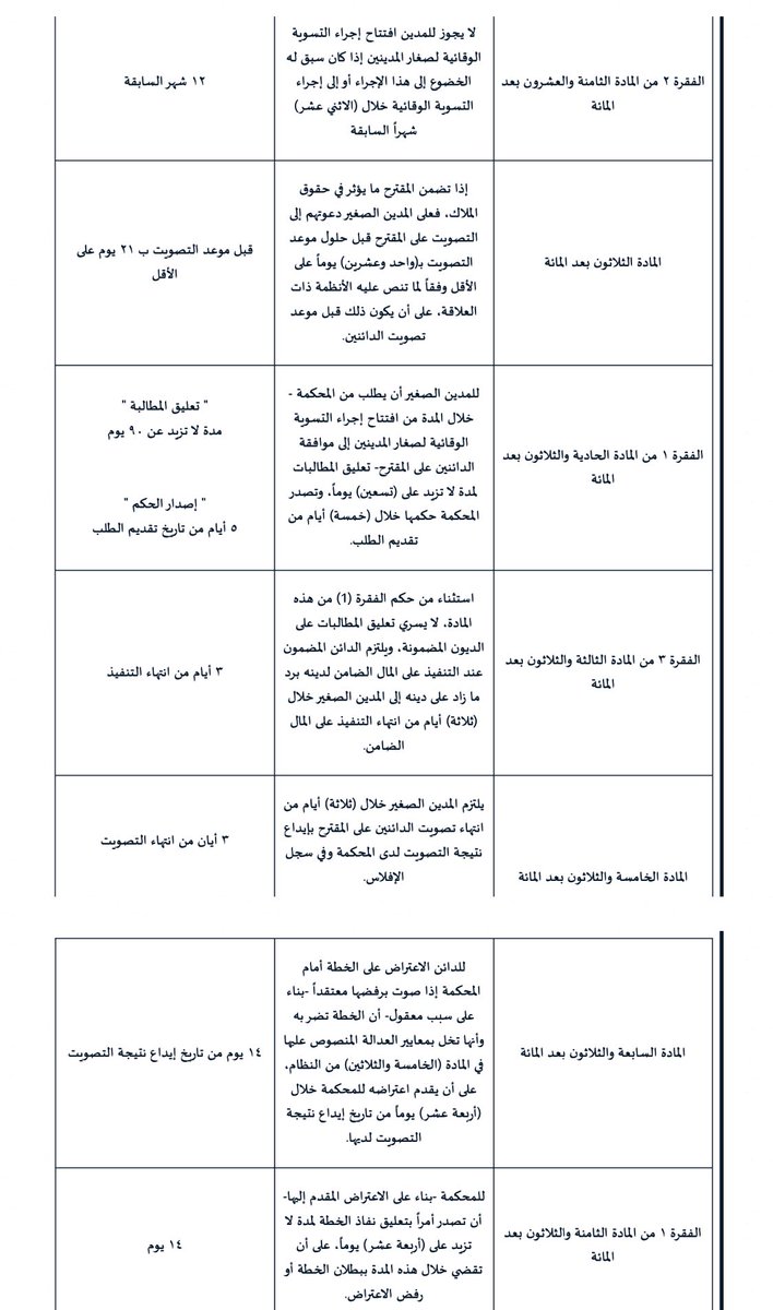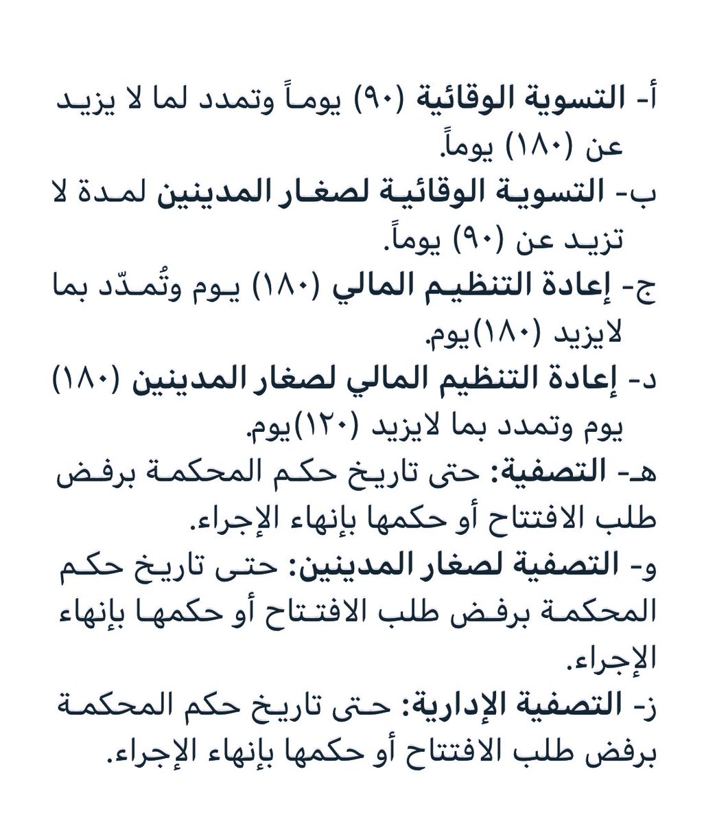 في المرفق المدّد المحددة المتعلقة باجراء التسوية الوقائية لصغار المدينين👇🏻