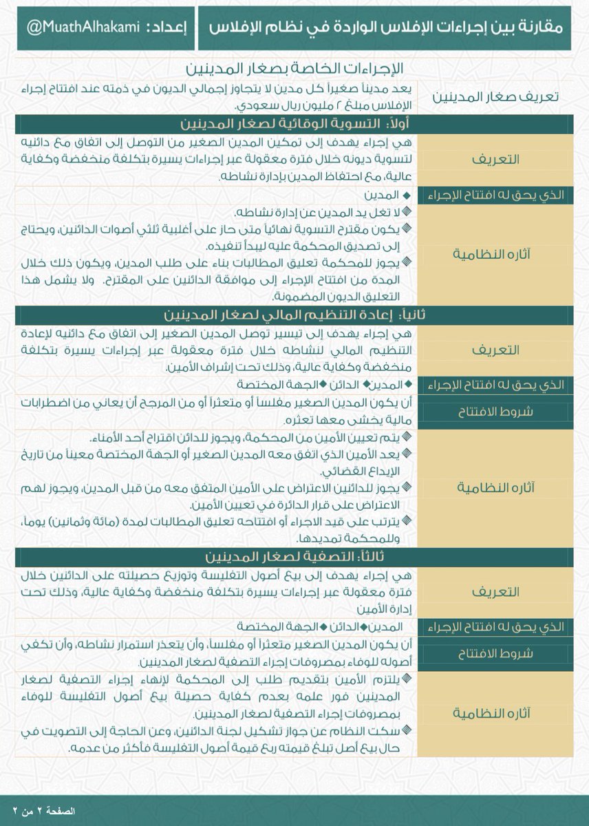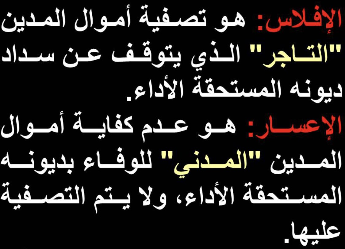 خريطة مميزة وبصفحة واحدة ودقة عالية توضح لك وتُبسّط أحكام واجراءات الافلاس: