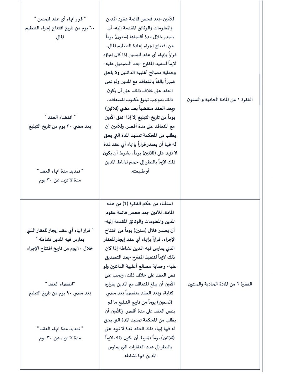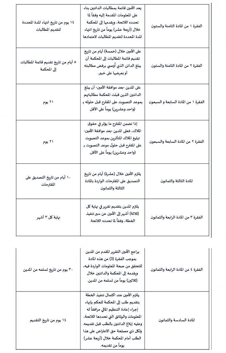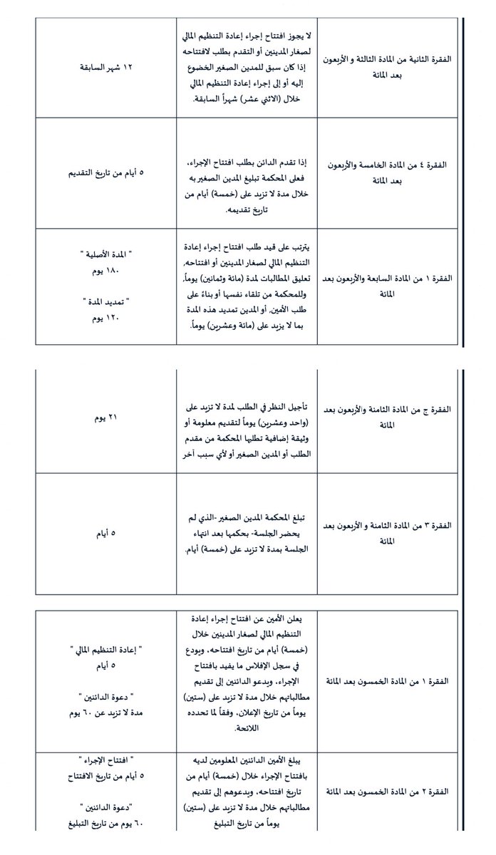 في المرفق المدّد المحددة المتعلقة باجراء إعادة التنظيم المالي لصغار المدينين👇🏻