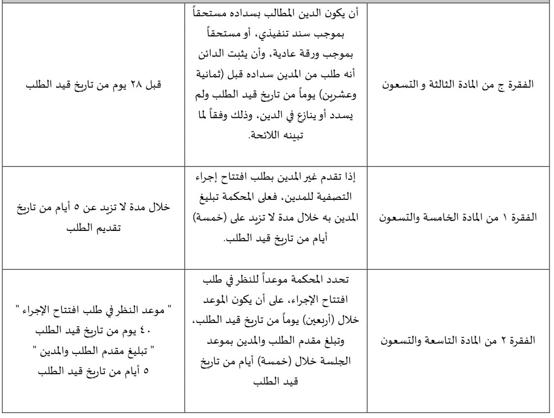 ما هي المدّد المحددة المتعلقة بـ(إجراء التصفية)؟