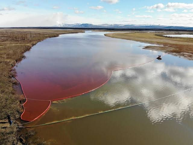 زي ما انتوا شايفين في الصور كده وحول المنطقة دي والمدن اللي حواليها بالكامل لواحدة من أكثر المناطق الملوثة على الكوكب بأكمله.. وحسب كلام إلينا بانوفا Elena Panova وزيرة البيئة الروسية، فإن التسرب عواقبه على البيئة "كارثية Catastrophic"..
