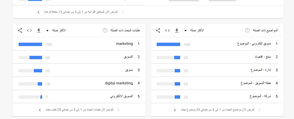 الأداة هي أداة جوجل ترند والي فيها ميزة مهمة جدا من خلالها بتقدر تعرف ايش المواضيع المتداولة والمتعلقة بموضوعك.